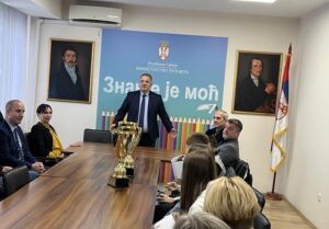 Извор: Министарство просвете – https://prosveta.gov.rs/vesti/ministar-stankovic-sa-ucenicima-koji-su-pobedili-na-evropskom-takmicenju-u-poznavanju-saobracajnih-propisa/ Министар просвете проф. др Дејан Вук Станковић разговарао је данас да са ученицима и наставницима, који су освојили прво место...